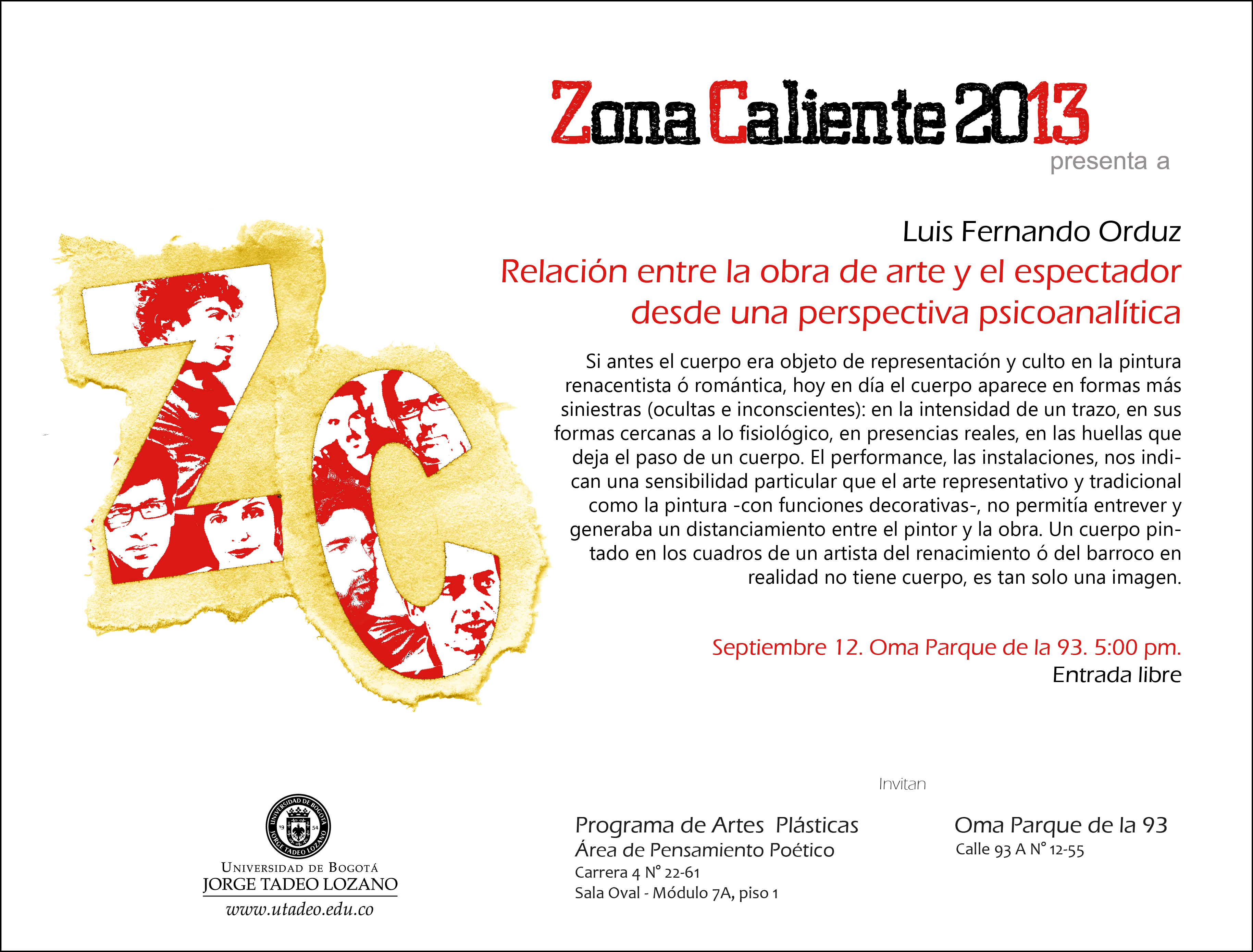 El programa de Artes Plásticas y Oma del parque de la 93 invitan a participar de la Zona Caliente este jueves 12 de septiembre desde las 5:00 de la tarde.