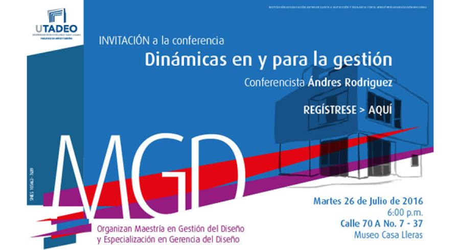 ConferenciaMaestría en Gestión del Diseño y Especialización en Gerencia de DiseñoFecha del evento: Martes, Julio 26, 2016 - 18:00Fecha fin del evento: Martes, Julio 26, 2016 - 19:30 Compartir en Biblioteca Museo Casa LlerasPrevia inscripción