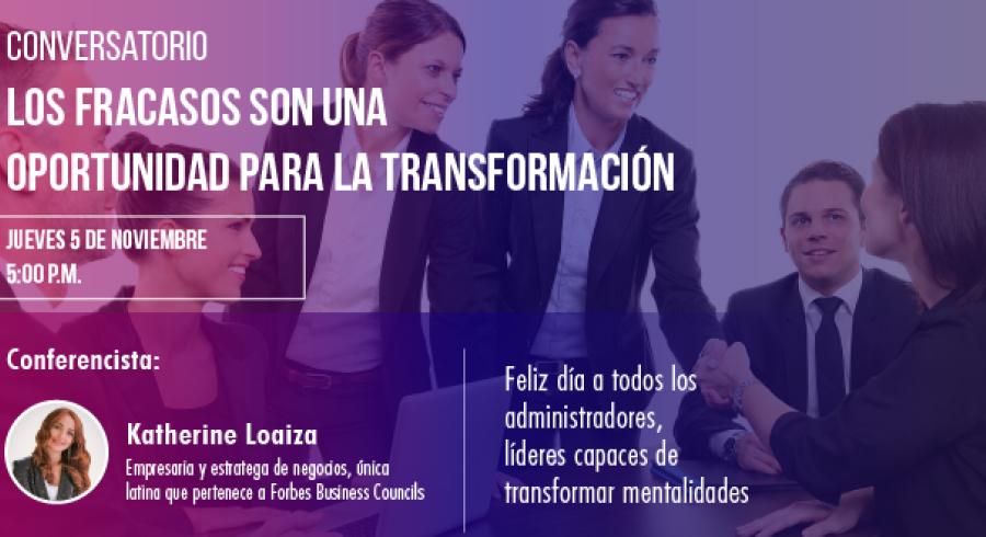 En este conversatorio, la empresaria y estratega de negocios, Katherine Loaiza, compartirá con nuestros asistentes las experiencias significativas de sus éxitos y derrotas en el mundo del emprendimiento con su charla "Los fracasos son una oportunidad para la transformación”.