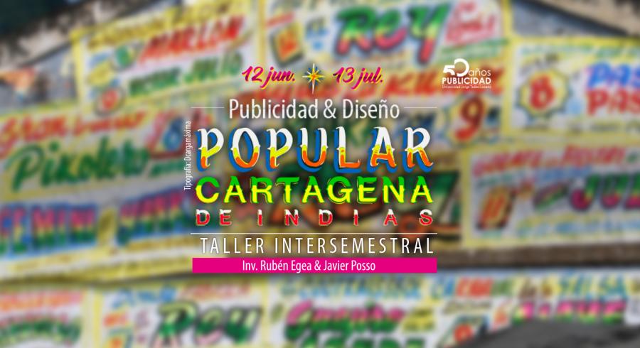 Desde el 12 de Junio hasta el 13 de Julio se realizará en la ciudad de Cartagena de Indias un taller estructurado en la pedagoía del “Aprender en el que hacer” se trata del primer curso intersemestral de “Publicidad y Diseño Popular en Cartagena de Indias” un ejercicio académico que permitira a los estudiantes sumergirse y conocer de primera mano las herraientas conceptuales, estéticas y de producción implementadas por algunos colectivos, artistas y talleristas de la ciudad.