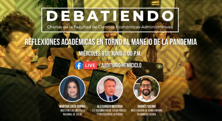 La quinta sesión de este año del espacio académico "Debatiendo" de la Facultad de Ciencias Económicas y Administrativas tiene como tema las "Reflexiones académicas en torno al manejo de la pandemia".