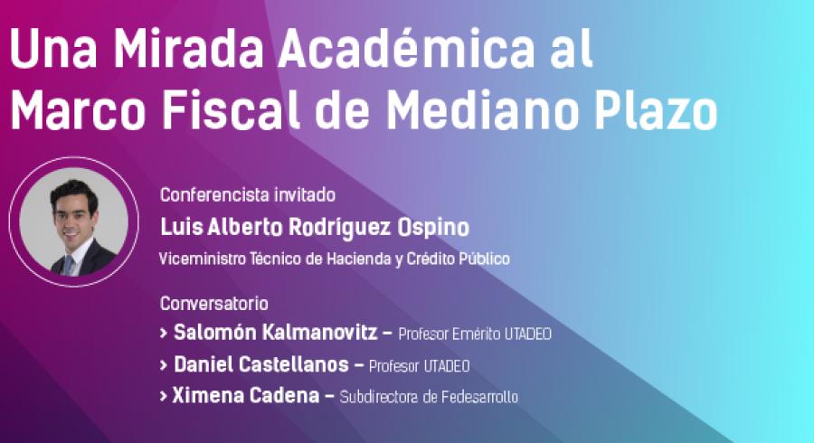 Enfatizar en los resultados y propósitos de la política fiscal; conocer el recuento general de los hechos más importantes en materia de comportamiento de la actividad económica y fiscal del país en el año anterior; y presentar las estimaciones para el año que cursa y para las diez vigencias siguientes son algunos de los objetivos del Marco Fiscal de Mediano Plazo, documento que presentará en Utadeo el jueves 8 de agosto, el Gobierno Nacional a través del Viceministro Técnico de Hacienda y Crédito Público, Luis Alberto Rodríguez Ospino.