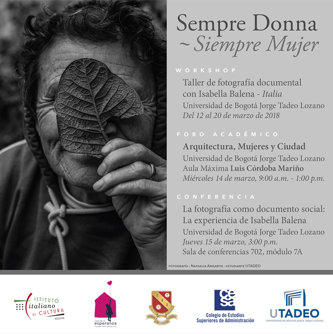 Recomendaciones: Para asistir a la charla de la fotógrafa Isabela Balena, favor registrarse en la entrada principal de Utadeo, en la Carrera 4 No. 22-61. Allí se le indicará el lugar en el que se desarrollará la charla.