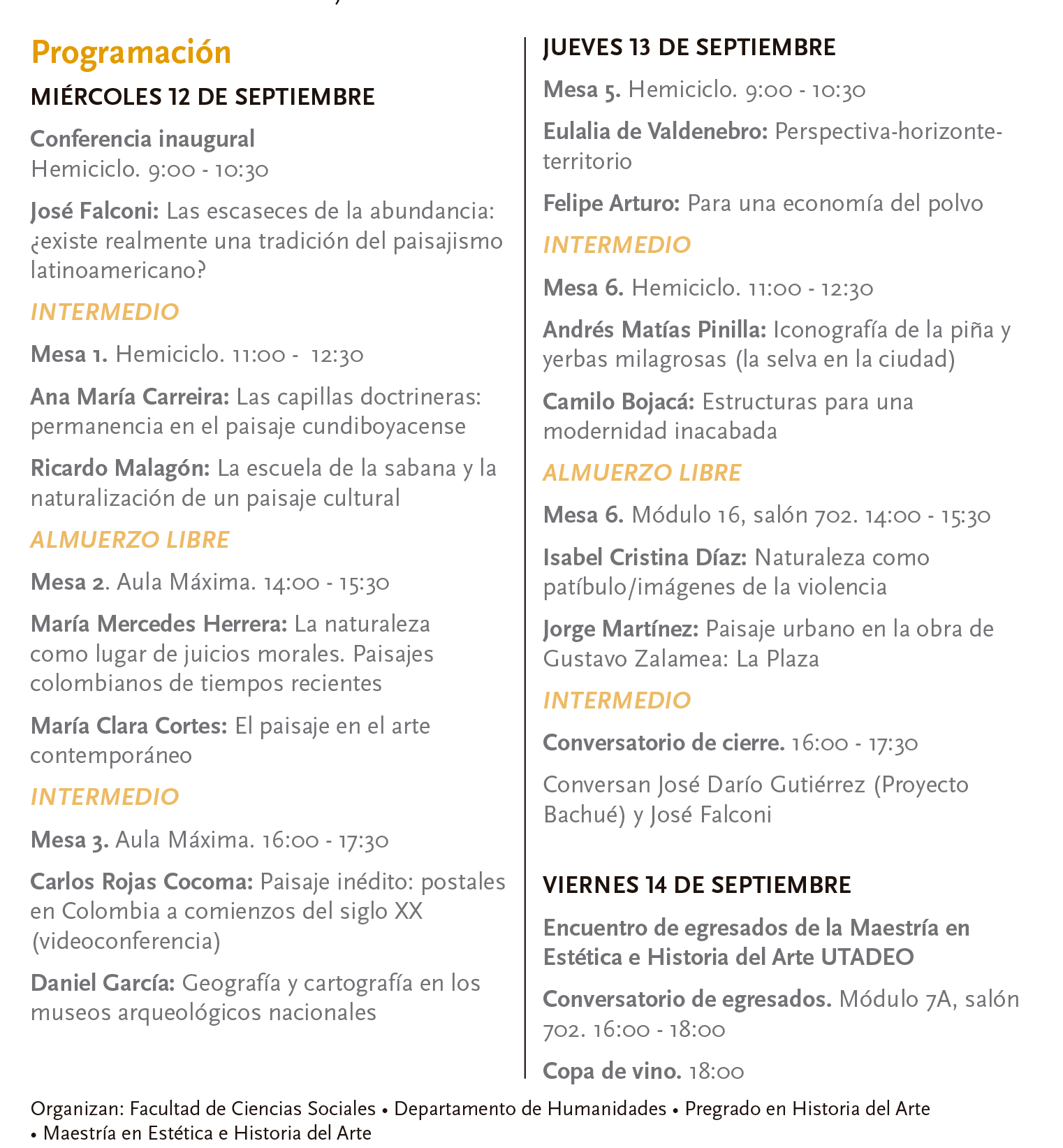 “Paisaje y territorio en el arte colombiano: nuevas perspectivas”, se propone como un espacio de diálogo para investigadores y creadores nacionales e internacionales que hacen del paisaje y el territorio el centro de su trabajo.