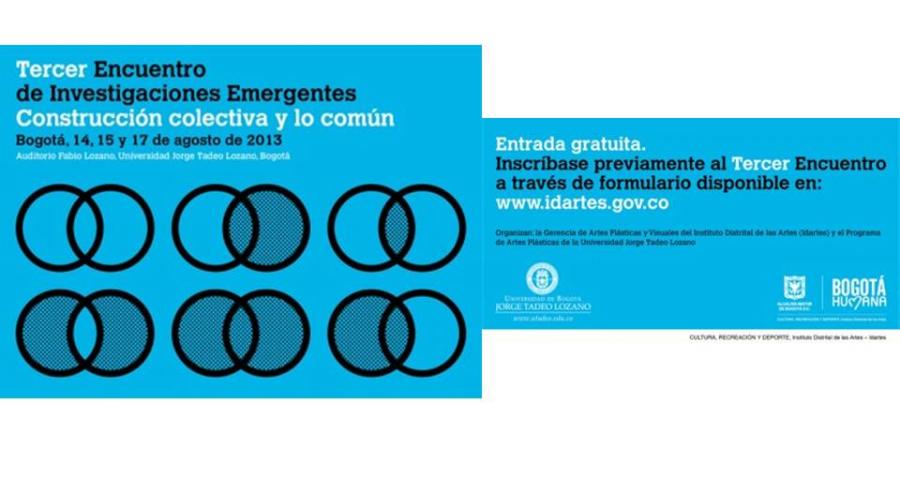El tercer encuentro de Investigaciones Emergentes explorará las múltiples maneras en que las artes plásticas construyen lugares donde es posible aprender a pensar juntos (maneras de conversar, maneras de mirar, modos de hacer, imaginar formas de organización, comunidades experimentales o instantes de comunión con el otro). Estas experiencias estéticas se constituyen en una invitación para que una serie de singularidades comiencen a pensar como comunidad y así lleguen a nombrar conjuntamente el mundo para construir un horizonte compartido desde el cual transformarlo.