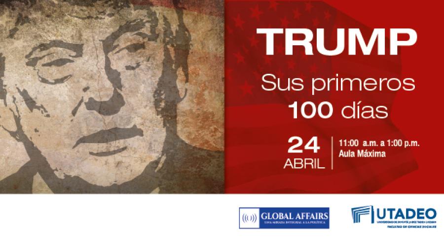 La revista Global Affairs y el Departamento de Ciencia Política y de Relaciones Internacionales de la Universidad Jorge Tadeo Lozano realizarán el lunes 24 de abril el Conversatorio ‘Trump: sus primeros 100 días’ que tendrá como eje principal un análisis y repaso de los principales aspectos en cuanto a los temas de pesos y contrapesos, así como de política exterior de la administración de Donald Trump como presidente de Estados Unidos.