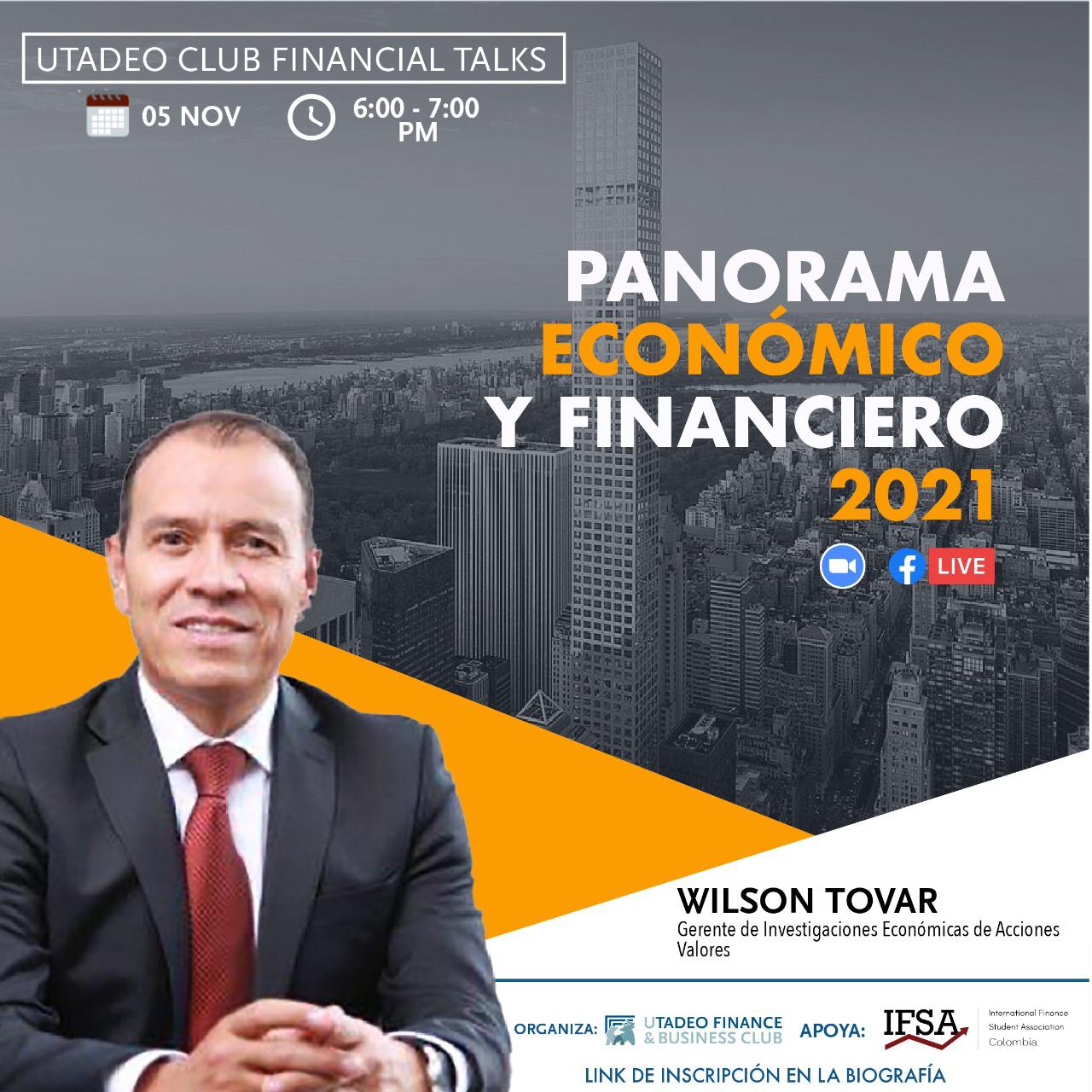 Este primer encuentro llamado “Panorama económico y financiero 2021” contará con la participación del Gerente de Investigaciones Económicas de Acciones y Valores y profesor universitario, Wilson Tovar, quien hablará sobre cómo está la situación financiera y económica actualmente y cómo podrían comportarse los movimientos monetarios por causa de la pandemia, en el 2021.