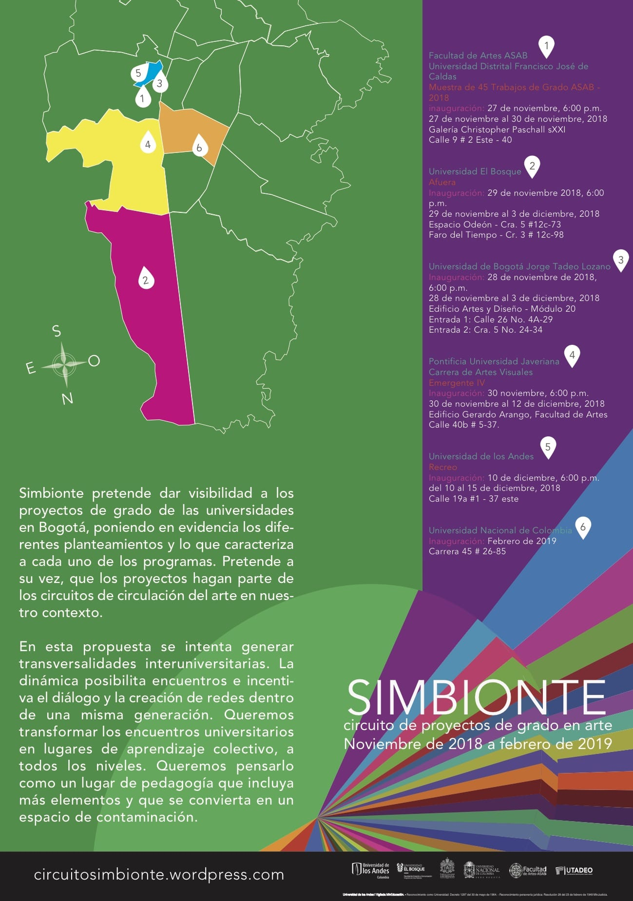 En esta ocasión, los proyectos de grado harán parte del circuito Simbionte que integra a estudiantes de la Universidad de Los Andes, la Universidad Distrital, la Universidad El Bosque, Universidad Jorge Tadeo Lozano, Pontificia Universidad Javeriana y la Universidad Nacional de Colombia.
