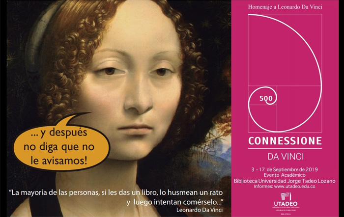 Connessione: homenaje a Leonardo da Vinci es un evento programado por el Sistema de Bibliotecas y el programa de Publicidad de nuestra universidad para conmemorar los 500 años del fallecimiento de este emblemático artista, inventor y científico, cuya obra ha marcado el devenir del mundo moderno.