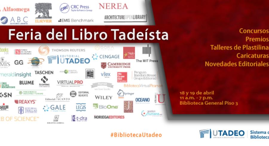 La Biblioteca Utadeo invita a la feria del libro Tadeísta, un espacio de encuentro en el que es posible conocer los recursos de información disponibles para la investigación, apreciar las novedades editoriales de los diferentes fondos y seleccionar material bibliográfico como apoyo al proceso académico; además de participar en talleres de plastilina y caricatura (materiales incluidos).