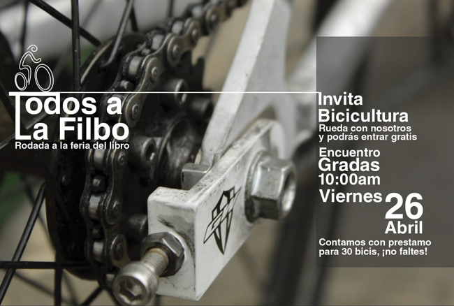 La cita será el viernes 26 de abril a las 10 am en el la plazoleta central de Utadeo, allí tendremos a disposición 30 bicicletas para préstamo. Si ya tienes tu cicla, puedes sumarte a la jornada y participar en actividades literarias, en donde 'leeremos la ciudad' mientras rodamos por ella. Una vez lleguemos a Corferias, los participantes obtendrán una entrada a FILBo 2019.