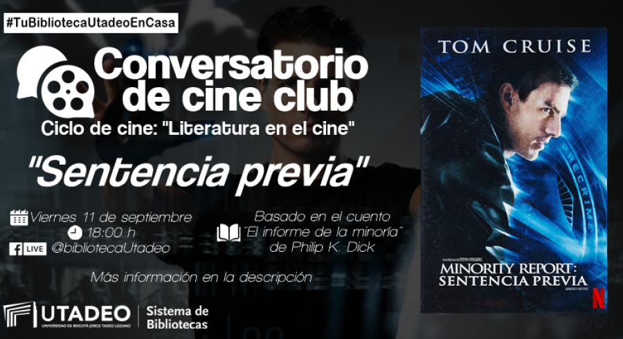 ¿No sabes que ver en Netflix? Tu Biblioteca Utadeo te recomienda "Sentencia previa" y te invita a participar en el Conversatorio de Cine Club en el Ciclo de cine "Literatura en el cine", película basada en el cuento "El informe de la minoría" de Philip K. Dick.