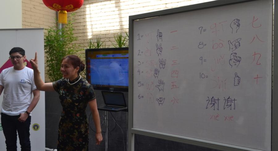 ¿Te gustaría saber cómo es una clase de chino? Para ti que eres curioso, que te gusta aprender idiomas, pero que no tienes mucho tiempo para clases de dos horas diarias ¡Tenemos lo que necesitas! Como parte de nuestro II Festival de Cultura China te invitamos a nuestras Lecciones Express de chino para Curiosos. Aprende a saludar con nĭ hăo (你好), a contar con un yī (一), èr (二), sān (三) antes de tomarte una foto con nuestras profesoras o a gritar ¡Gēlúnbĭyà! (哥倫比亞) cuando pregunten de dónde eres. ¡Son gratis!