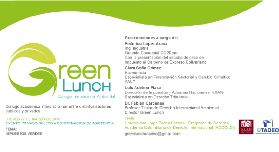 Asista al Green Lunch sobre impuestos verdes este jueves 22 de marzo