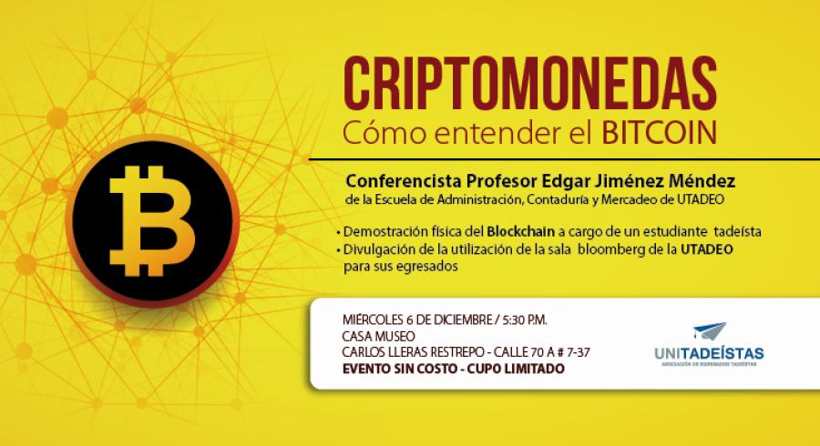 Diciembre 06 / 2017Cómo entender el BITCOIN. Conferencista Profesor Edgar Jiménez Méndez de la Escuela de Administración Contaduría y Mercadeo de UTADEO.