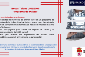BecasJunio 06 / 2023El objeto de la presente convocatoria es la concesión de 15 ayudas para estudiantes extranjeros que comiencen sus estudios de máster oficial en la Universidad de León.