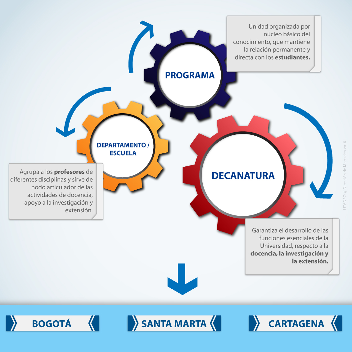 La Universidad Jorge Tadeo Lozano viene desde el 2009 trabajando en la consolidación de una cultura de gestión innovadora, basada en la implementación y consolidación de procesos, en el fortalecimiento de la gestión de las Facultades y en la incorporación de prácticas gerenciales innovadoras. Esta nueva visión de la Universidad se fortalece actualmente con la puesta en marcha de la Nueva Estructura Orgánica de Facultades (Resolución 037 de 2015), que presentamos a la Comunidad Tadeísta.