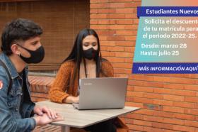 DestacadasMayo 10 / 2022Si eres estudiante nuevo, pide tu descuento para 2022-2 y el intersemestral. Conoce aquí cómo hacerlo.