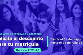 DestacadasMayo 31 / 2021Los descuentos son beneficios otorgados por la Universidad a los estudiantes que cumplan con algunos requisitos, para que de esta forma disminuya el valor de su matrícula. Solicítalos hasta el 25 de julio. Recuerda que no son acumulables entre sí.