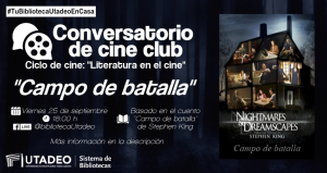 ¿No sabes que ver? Tu Biblioteca Utadeo te recomienda "Campo de batalla" y te invita a participar en el Conversatorio de Cine Club en el Ciclo de cine "Literatura en el cine", película basada en el cuento "Campo de batalla" de Stephen King (página 103).