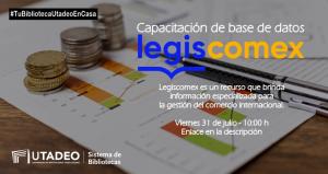 #BiblioDato #BiblioCapacitación El Sistema de Bibliotecas de la Universidad Jorge Tadeo Lozano invita a estudiantes y profesores de la Institución a participar en la capacitación del recurso Legiscomex.