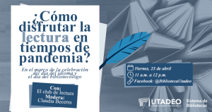 En el marco de la celebración del día del idioma y el día del bibliotecólogo acompáñanos el próximo vieres 23 de abril a las 11:00 a.m. en nuestra charla ¿Cómo disfrutar la lectura en tiempos de pandemia? a través de Facebook @bibliotecautadeo
