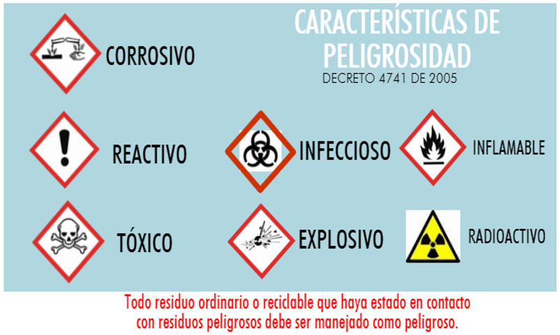 Para asegurar el manejo adecuado de los Residuos Peligrosos es importante tener en cuenta que todos los productos que tengan las siguientes características de peligrosidad deben ser manejados como residuos peligrosos.
