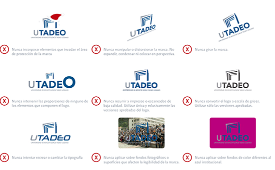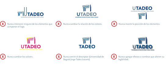 La solidez y constancia del entorno visual y la fortaleza de la identidad de UTADEO dependen de que todas las personas involucradas en su implementación hagan un uso correcto de nuestra identidad.
