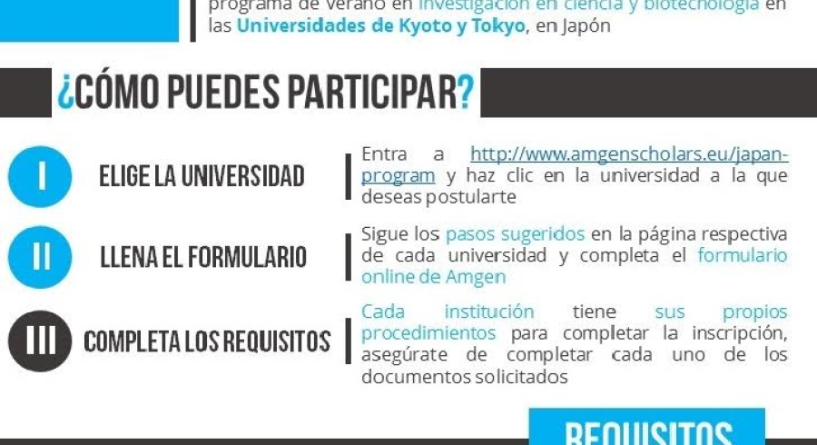 Los alumnos que quieran participar de esta oportunidad deberán diligenciar sus datos en un formulario que se encuentra en http://www.amgenscholars.com/japan-program hasta el 1 de febrero de 2017 y seguir los siguientes pasos: