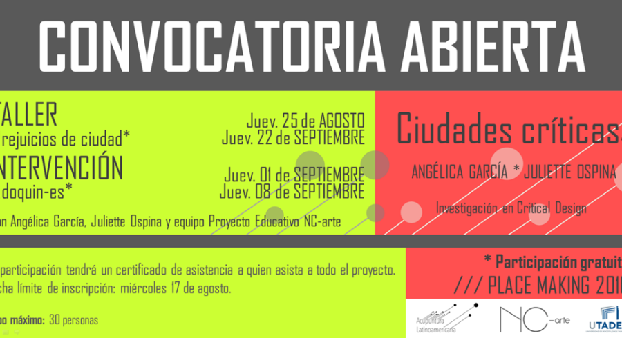 Angélica García y Juliette Ospina profesoras de la Escuela de Diseño de Producto y el Programa de Diseño Industrial de la Universidad Jorge Tadeo Lozano en colaboración con el Proyecto Educativo de NC-arte invitan a participar en el proyecto Ciudades Críticas.