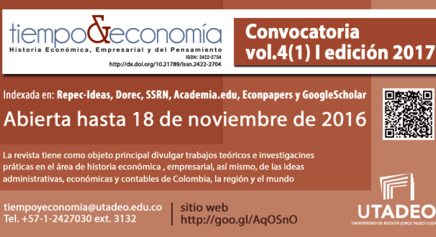 Tiempo&Economía, la única revista de historia económica del país, editada por la Facultad de Ciencias Económicas y Administrativas de Utadeo, abre su convocatoria para el primer número del 2017.