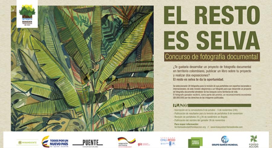 Como parte de la Estrategia Integral de Control a la Deforestación y Gestión de los Bosques, 'Bosques Territorios de Vida', el Ministerio de Ambiente y Desarrollo Sostenible invita a fotógrafos colombianos o extranjeros residentes en el país por más de dos años a participar en Concurso de Fotografía 'El Resto es Selva'.