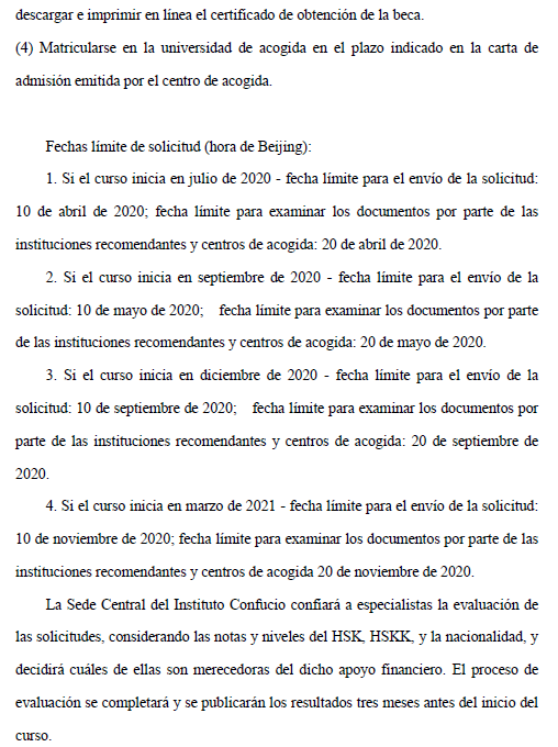 • Gastos de manutención (2.500 RMB mensuales para becas de un año y pregrado) (3.000 RMB mensuales para Master). Estos gastos se incluyen sólo en las becas completas
