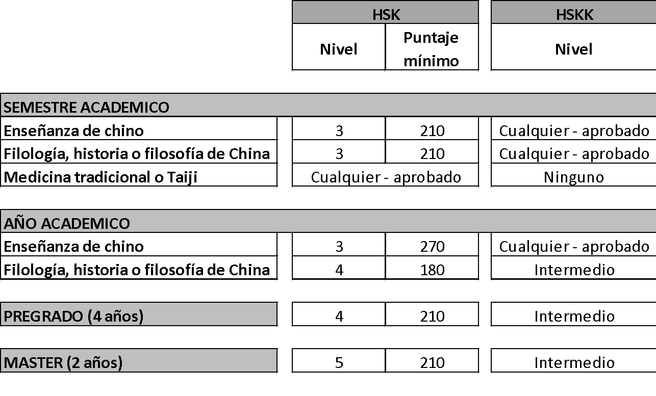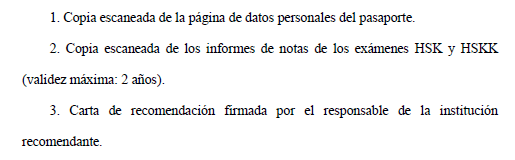 • Fotocopia del HSK – HSKK aprobado de acuerdo al tipo de beca