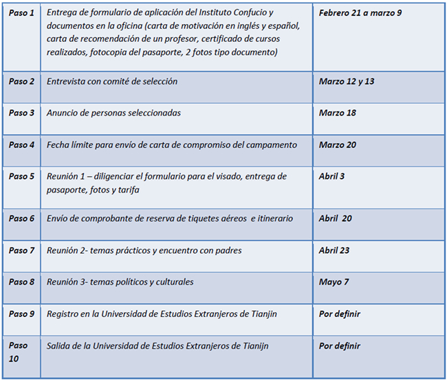 Para la inscripción, el aspirante debe radicar los siguientes documentos completos en las instalaciones del Instituto Confucio antes del 13 de marzo: