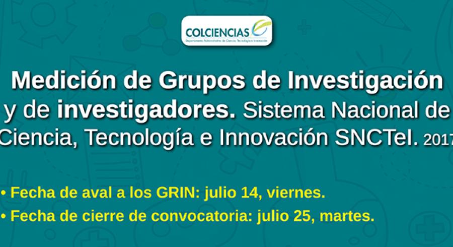 Reconocimiento y medición de Grupos de Investigación, Desarrollo Tecnológico o de Innovación y para el reconocimiento de Investigadores del Sistema Nacional de Ciencia, Tecnología e innovación - SNCTeI 2017 | |