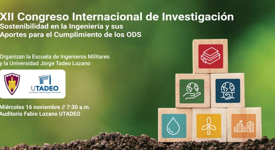 El próximo 16 de noviembre se llevará a cabo en el Auditorio Fabio Lozano el XII Congreso Internacional de Investigación "Sostenibilidad en la Ingeniería y sus aportes para el cumplimiento de los ODS". Evento académico que tiene como propósito intercambiar experiencias entre investigadores sobre Sostenibilidad en la Ingeniería, además de promover la cultura investigativa, que intensifique el interés por el conocimiento, la producción científica, y la integración a proyectos de investigación y grupos de estudio.