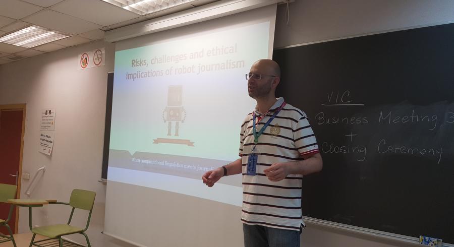 El profesor Moisés Limia del Departamento de Comunicación Social y Cinematografía de Utadeo tuvo la oportunidad de participar en una sesión consagrada al estudio y análisis crítico de Perspectivas éticas en la práctica periodística dentro del grupo de trabajo sobre Ética de la Sociedad y Ética de la comunicación. El profesor Limia presentó una ponencia titulada “Riesgos, desafíos e implicaciones éticas del periodismo robot” en la que señaló que los principales desafíos asociados a la utilización de robots periodistas se sitúan en el ámbito de la transparencia, la proliferación de noticias falsas y la pérdida de valores. En cuanto a los desafíos, resaltó la necesidad de una mayor “transparencia algorítmica” del periodismo robot, una mejor comprensión algorítmica por parte de periodistas, editores y audiencia en general y, finalmente, la exigencia imperiosa de reflexionar sobre las implicaciones legales, éticas y sociales derivadas del empleo de periodistas robots en las redacciones.