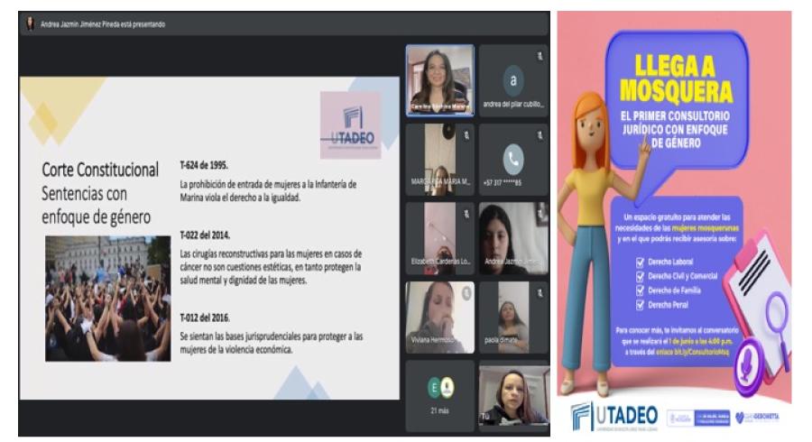 El pasado 01 de junio, la @AlcMosquera - Cundinamarca a través de la Dirección de Mujer, Familia y Poblaciones Vulnerables, realizó en el marco de la alianza con nuestro Consultorio Jurídico de la Utadeo, el conservatorio sobre derechos, evolución y reivindicación, para las mujeres mosquerunas