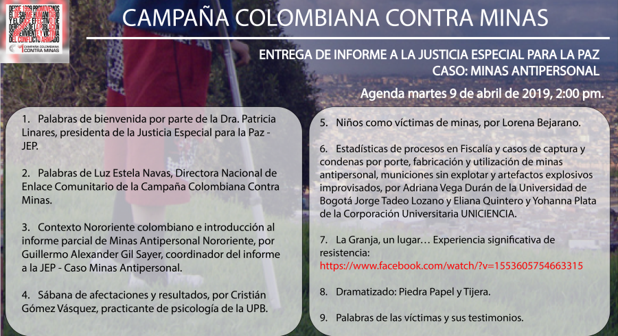 Entrega del Informe a la JUSTICIA ESPECIAL PARA LA PAZ - JEP Caso: MINAS ANTIPERSONAL