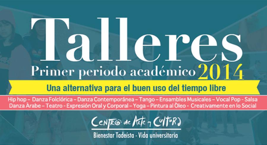 El Centro de Arte y Cultura de la Tadeo, da una cordial bienvenida a toda la comunidad universitaria y los invita a inscribirse en los talleres que ofrece para el primer semestre de 2014 como alternativa de bienestar y buen uso del tiempo libre.