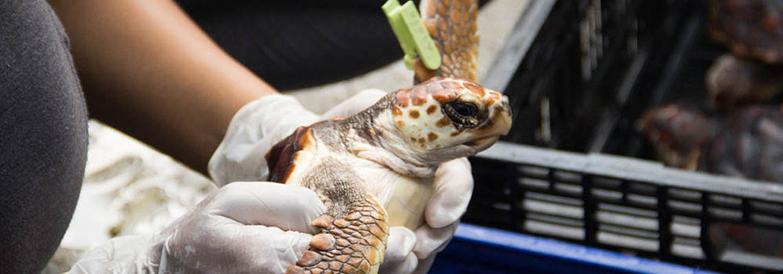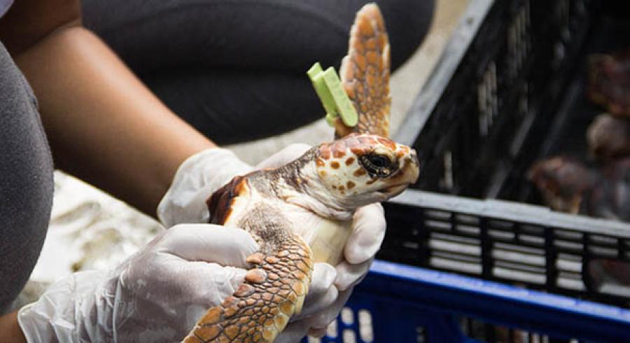 La tortuga Caguama (Caretta caretta) ha sido protegida durante 18 años por el Programa de Conservación de Tortugas y Mamíferos Marinos de Utadeo Santa Marta, liderado por la profesora Aminta Jáuregui.