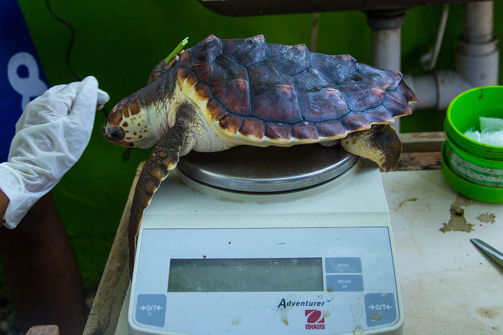El marcado de tortugas también se aprovecha para medir y tomar el peso de los ejemplares.