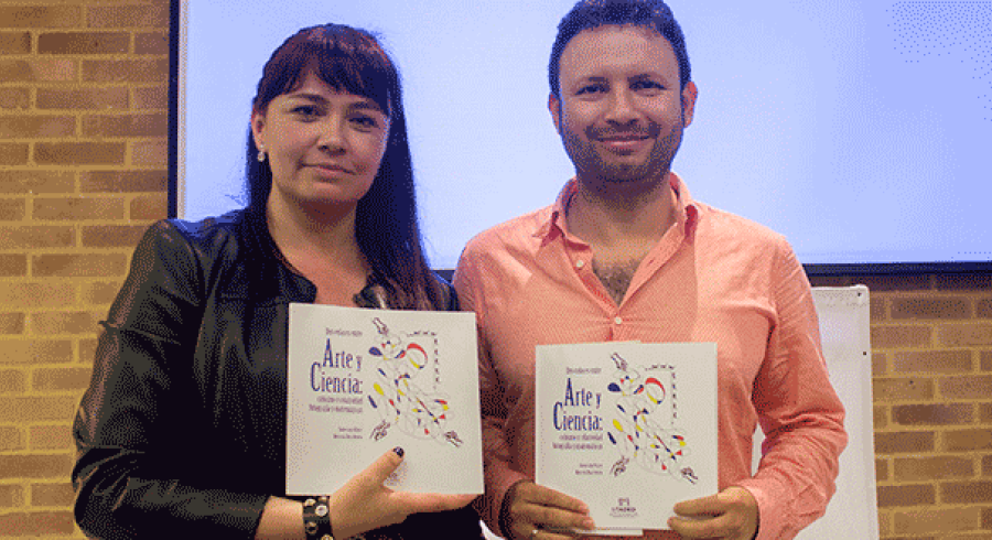El pasado martes 26 de abril, en el Salón Jorge Isaacs de Corferias, se realizó el lanzamiento del libro "Dos enlaces entre arte y ciencia: cubismo y relatividad; fotografía y matemáticas". En el evento se realizó un Conversatorio con los autores Favio Cala Vitery y Marcela Díaz Osorio, moderado por el Decano de la Facultad de Artes y Diseño de Utadeo, Alberto Saldarriaga. Junto a los autores estuvieron presentes Camilo Espejo, físico y doctor en Nanociencia y profesor del Departamento de Ciencias Básicas de Utadeo, y Carolina Rodríguez, artista plástica tadeísta.