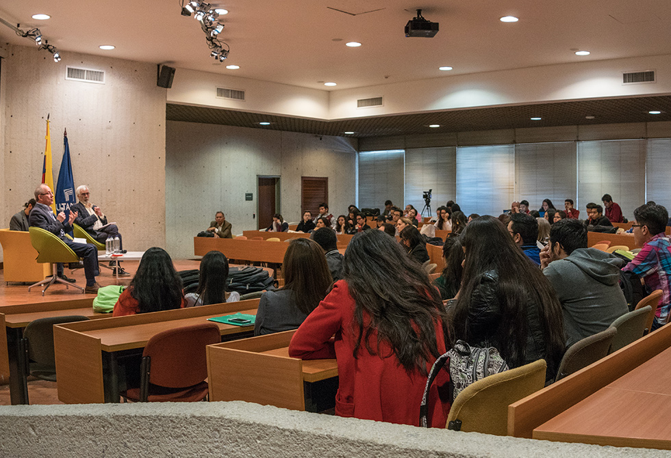 Doscientos años después de la gesta libertadora que selló la independencia de Colombia, el 7 de agosto de 1819, son varios los interrogantes que enfrenta el país en torno a temas como la inclusión social, el crecimiento económico y el cese del conflicto armado. En Utadeo, de la mano del reconocido historiador y ex decano de la Facultad de Ciencias Sociales, Orlando Melo, y del profesor emérito de la institución, Salomón Kalmanovitz, se brindó un panorama de lo que hemos sido, somos y seremos como Nación. El conversatorio fue moderado por José David Moreno, profesor del Departamento de Ciencia Política y Relaciones Internacionales.