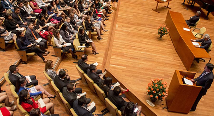 La primer sesión de graduaciones fue presidida por Christian Schrader, decano del programa y director de la maestría en Publicidad, quien tomó juramento a los graduandos, bajo la premisa del espíritu ecologista como estandarte de la ética tadeísta.