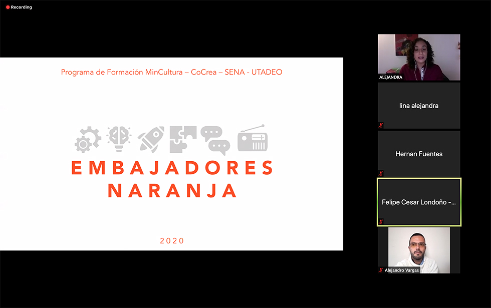 De ahí que Utadeo, junto al SENA, han diseñado un programa que representa toda una estructura para entender qué es la economía creativa, la economía naranja, qué significa el desarrollo territorial vinculado con la cultura y la creatividad, qué significa el emprendimiento y la innovación en el sector cultural creativo y las artes, cómo se puede avanzar hacia organizaciones de manera más efectiva, cómo se puede tener una comunicación más directa con las comunidades. Una serie de tópicos que le dará las herramientas a estos 180 embajadores que inician un largo proceso y que retoman el legado de los 150 embajadores que adelantaron su formación en el periodo 2019-2020.