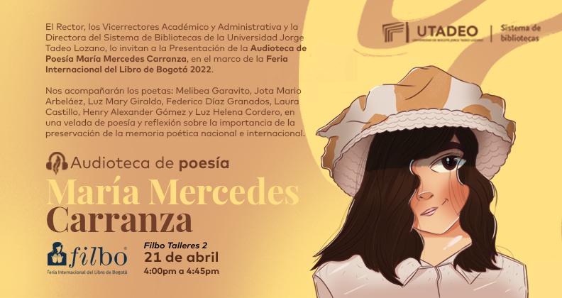 El lanzamiento de la Audioteca de Poesía María Mercedes Carranza, se hará este jueves 21 de abril en el marco de la Feria Internacional del Libro de Bogotá. Nos acompañarán los poetas nacionales: Melibea Garavito, Jota Mario Arbeláez, Luz Mary Giraldo, Federico Díaz Granados, Laura Castillo, Henry Alexander Gómez y Luz Helena Cordero, en una velada de poesía y reflexión sobre la importancia de la preservación de la memoria poética nacional e internacional.