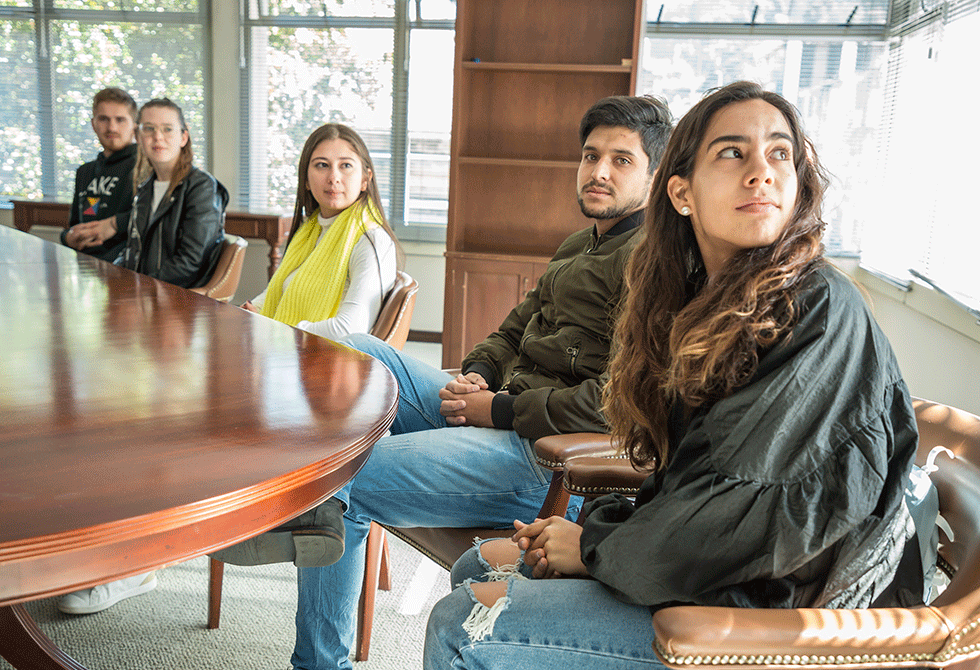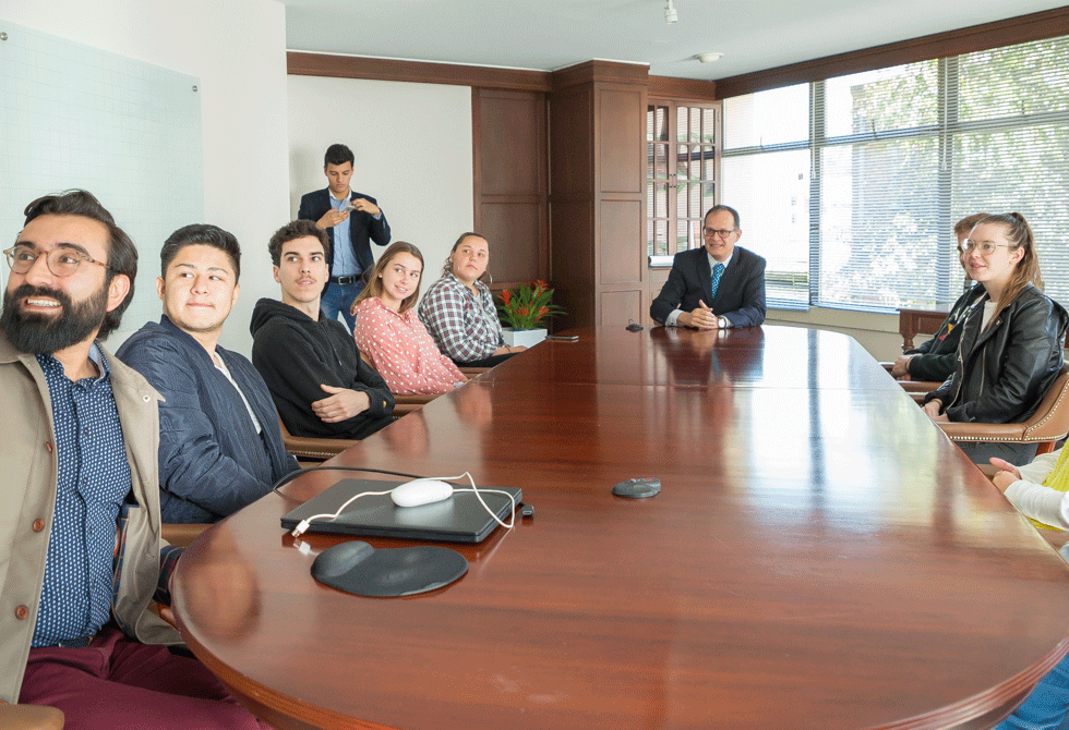 El grupo de estudiantes que desarrollarán su movilidad académica en Utadeo fueron recibidos por el vicerrector Académico, Andrés Franco.