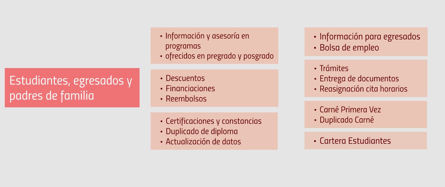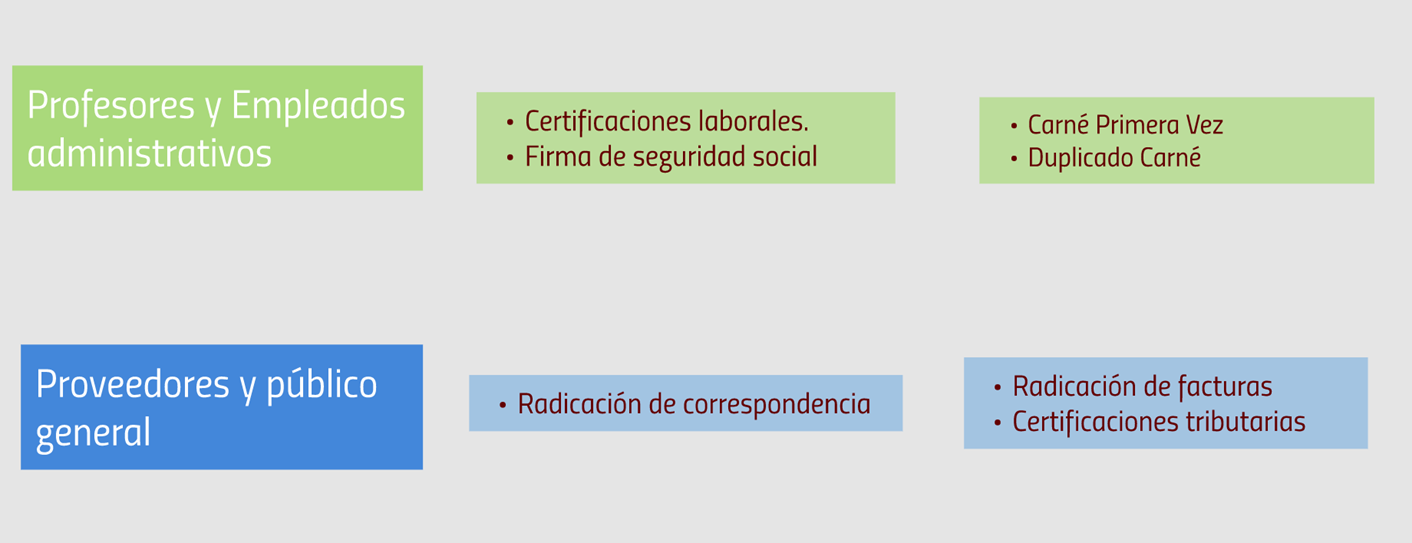 Este nuevo modelo se hace realidad con la apertura del Punto de atención a la comunidad tadeísta, ubicado en el primer piso del módulo 16, que se inició prestación de servicios el 27 de septiembre, que tiene como objetivo ofrecer a toda la comunidad universitaria un espacio donde podrán realizar diversos trámites en un mismo lugar sin necesidad de desplazamientos entre edificios y oficinas, en el cual los estudiantes podrán: